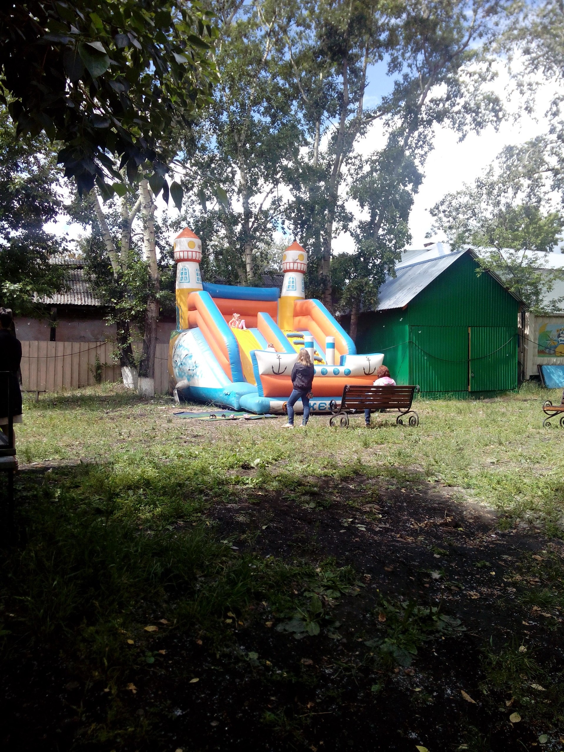 Летняя детская площадка принимает ребятишек в возрасте до 10 лет, для их развлечения: карусель «Сказка», батут, электромобили;