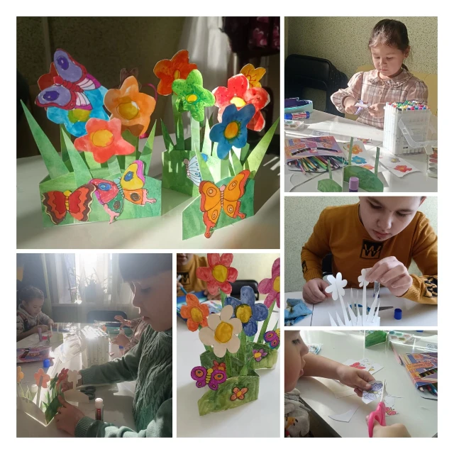 5 марта в студии творчества "Какао" состоялось занятие для детей, где ребята научились выполнять объемную композицию-открытку к 8 марта